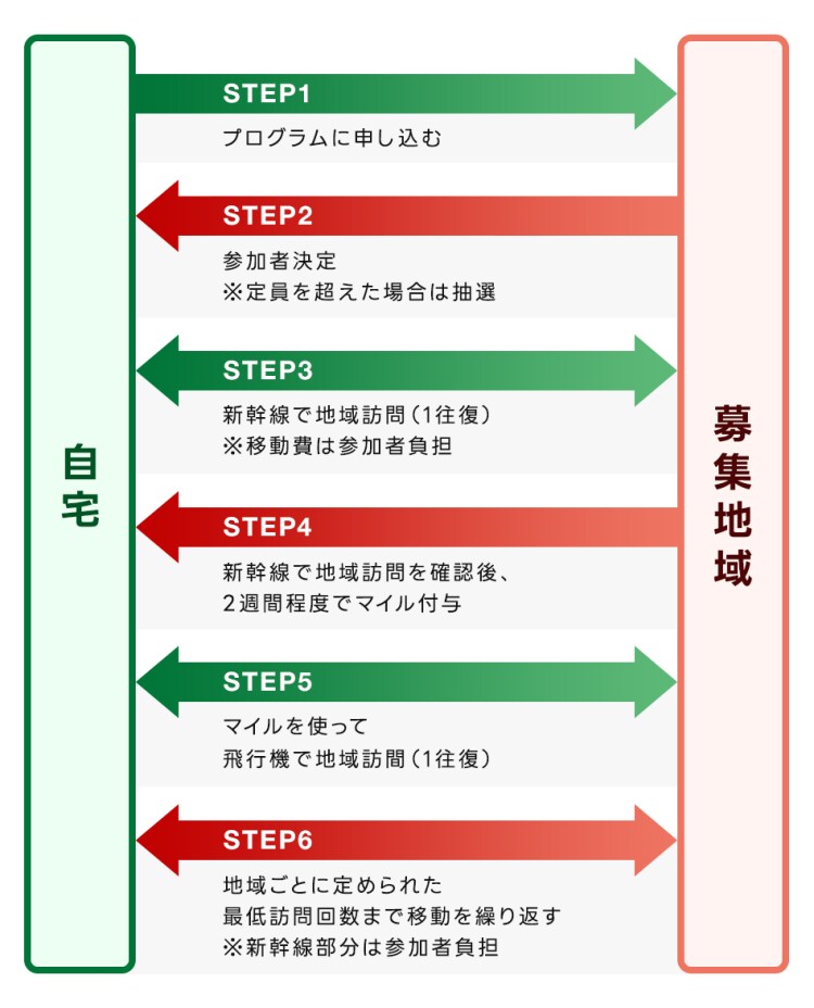 ・対象期間中に、東北新幹線とJALグループ運航便の対象路線を同回数利用してにかほ市へ訪問すること